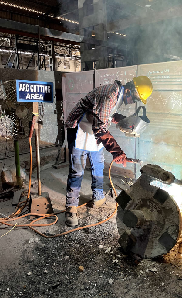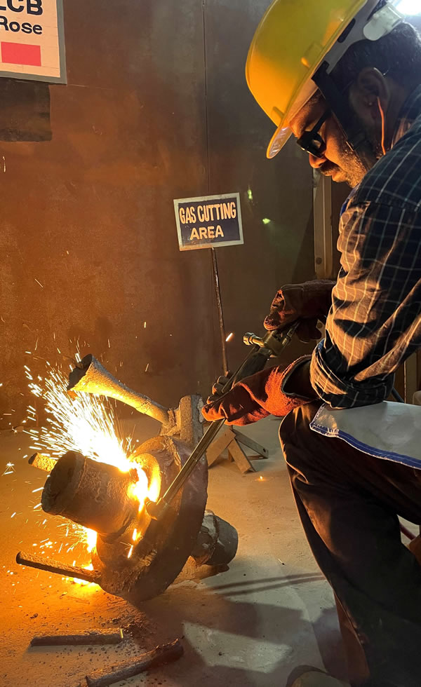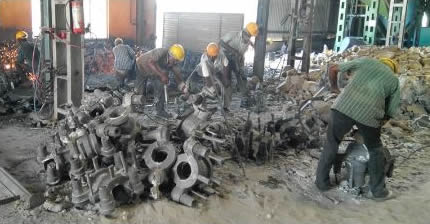 Knock out process involves the separation of castings from sand mould and sand from mould boxes and cores from castings. Operators are well-trained for the implementation of the process.